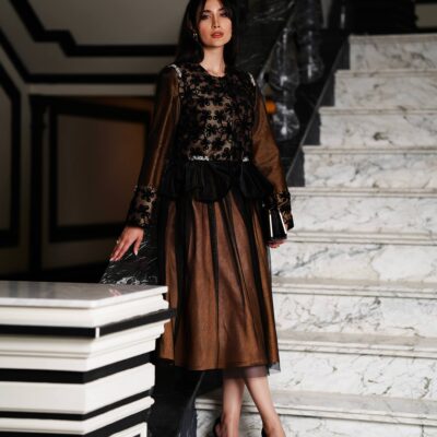 پارچه تور گلدوزی شده +نوار ریش ریش ابریشمی